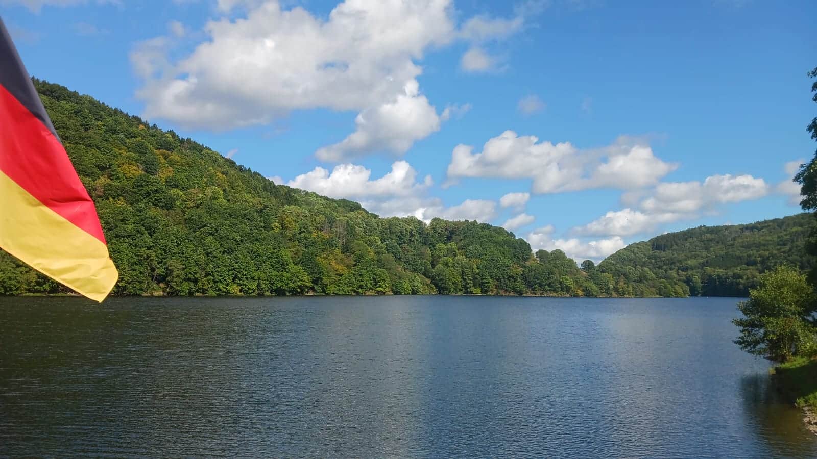 Nur 2 Gehminuten entfernt liegt die Anlegestelle Einruhr. Von hier fahren die Schiffe nach Rurberg und zurück – eine entspannte Tour über den Obersee.
