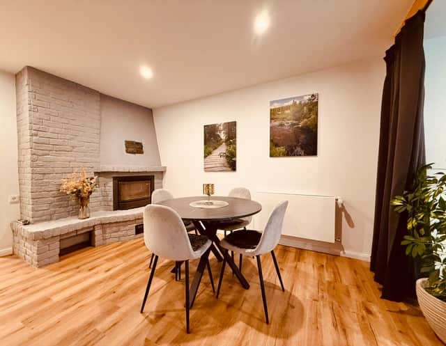 Unsere gemütliche Ferienwohnung (ca. 70 m²) bietet viel Platz zum Wohlfühlen und überzeugt mit einem schönen, großen Garten zur Alleinnutzung. Die helle, offene Küche geht in den Wohnbereich über, wo ein gemütlicher Kamin für eine besonders angenehme Atmosphäre sorgt.